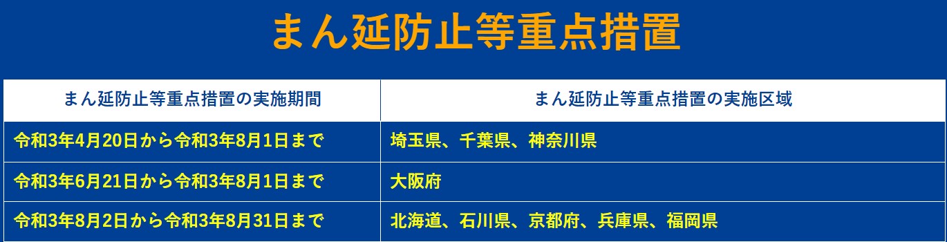 9月30日までまん延防止等重点措置:宮城県・福島県・石川県・岡山県・香川県・熊本県・宮崎県・鹿児島