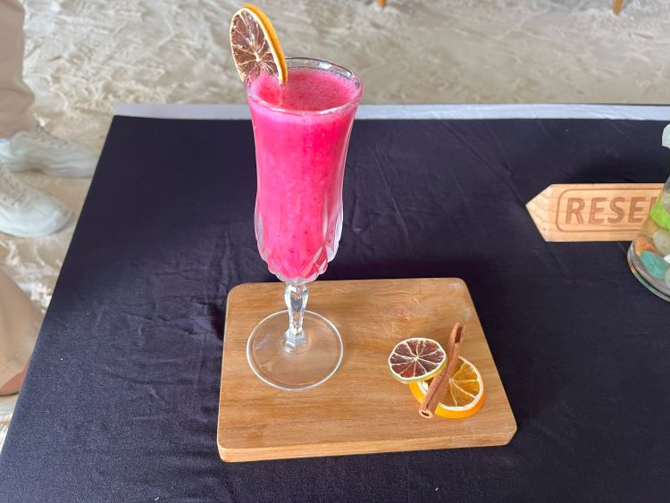空港から40人乗りくらいの大きなスピードボートで移動しました。ライフジャケットが配られ、着用してから船に乗り込みます。船内のQRコードを読み込むとフリーWi-Fiを使用できます。波に揺られること約45分。リゾート到着後は、冷たいウェルカムドリンクのサービスが!荷物はお部屋までスタッフさんが運んでくれますよ。
