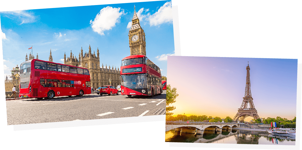 日本から直行便で約15時間。ビッグ・ベン、バッキンガム宮殿、タワーブリッジ、ロンドンアイと見どころがたくさんのロンドン。風情のある街並みを散策するも良し、ユーロスターを使って、パリやアムステルダムなど他国と周遊も良し。