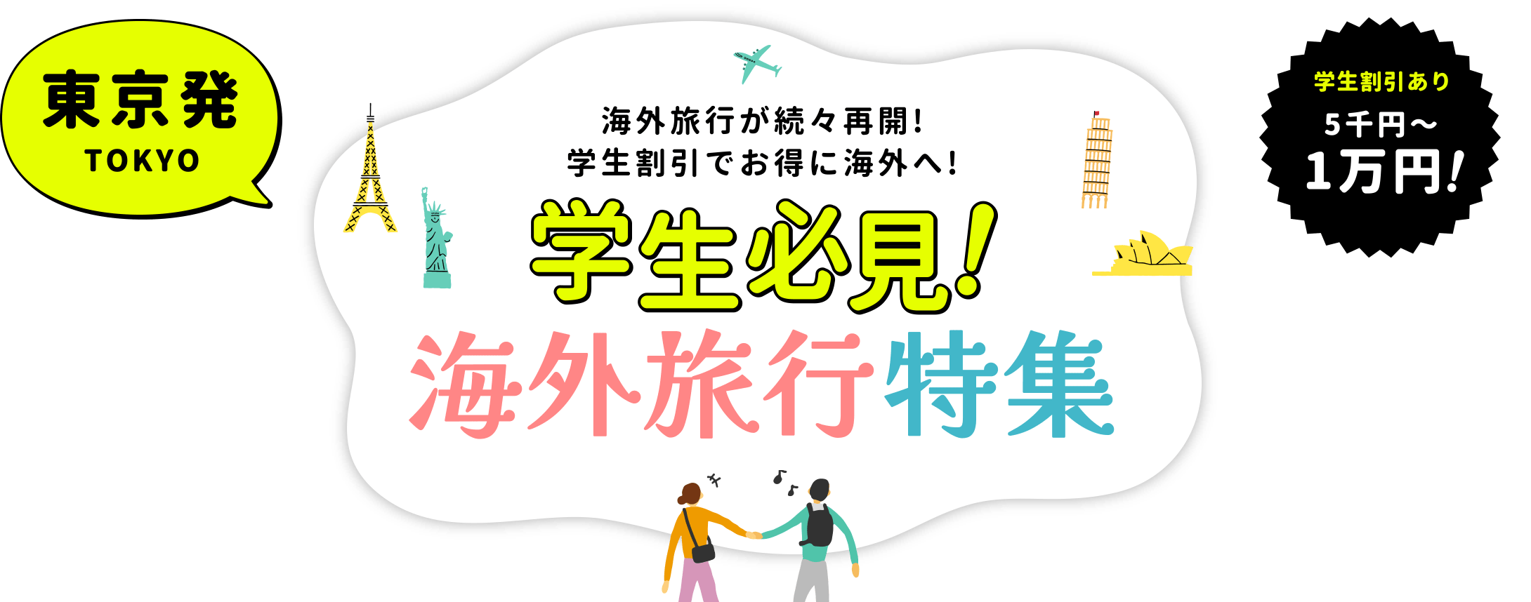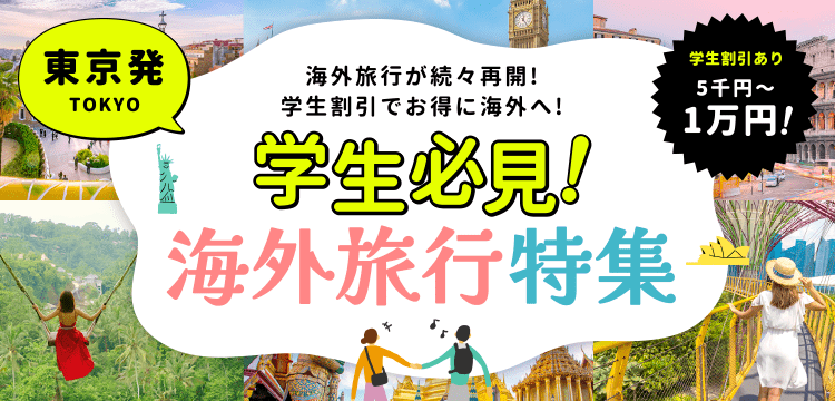 • ツアーお問い合わせ時に学生割引の使用のお申し出が無い場合は適用対象外です。