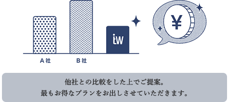 - 価格はもちろん他社と比較。その上で、どこよりもリーズナブルなプランを作成してご提案します。
