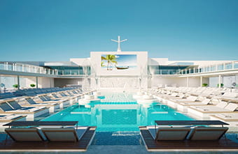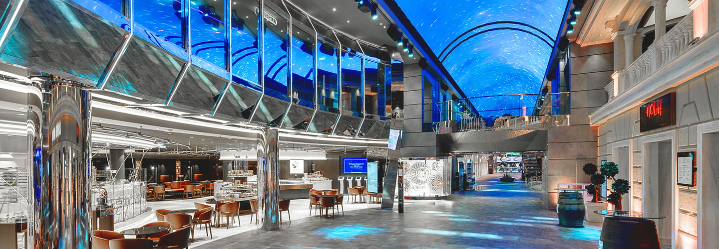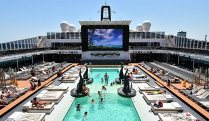 - 2019年11月に就航したばかりの最新客船。ほぼ毎日2回、シルク・ドゥ・ソレイユによるオリジナルショーも鑑賞可。