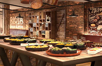 - 滞在中すべてのお食事がついています。ディナー時のメインレストランや、いつでもご利用頂けるビュッフェがございます。飲み物については別途有料オプションで、アルコールやソフトドリンクの飲み放題をお付けできるドリンクパッケージがございます。