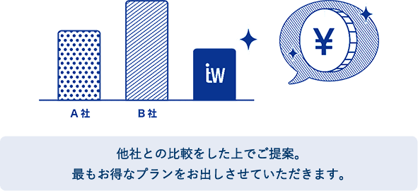 - 価格はもちろん他社と比較。その上で、どこよりもリーズナブルなプランを作成してご提案します。