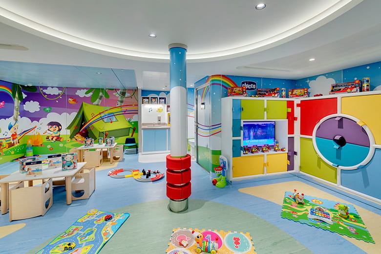 - 700m2ものお子様エリアには年齢に合わせて楽しめるアクティビティや7部屋のお子様ルームが完備。