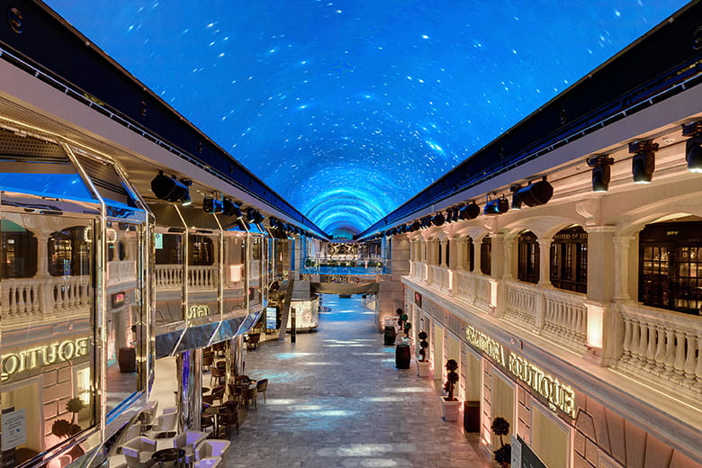 最先端技術が用いられた船内では、シルク・ドゥ・ソレイユによる専用の新しい2種類のショーをお食事と共にお楽しみ頂けます。