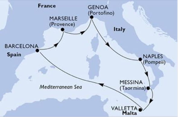 ※1月〜3月の寄港地は、バルセロナ×マルセイユ×ジェノバ×パレルモ×バレッタ×マルタです。