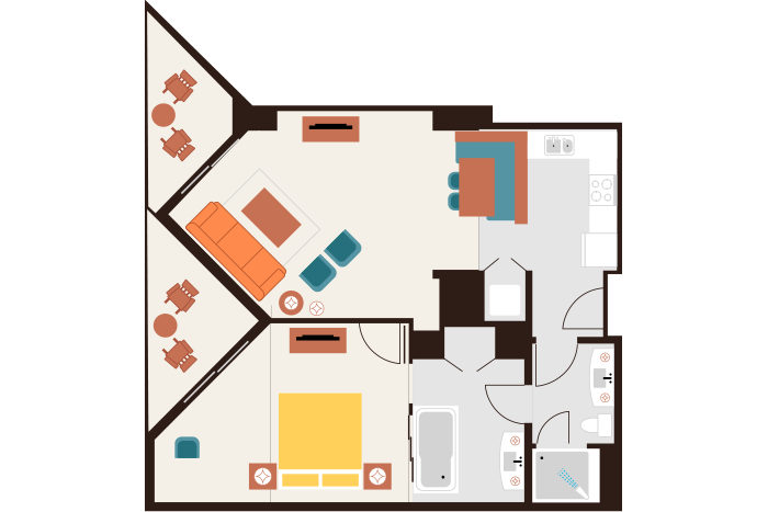 独立したベッドルームがあり、自宅のようにくつろげるワンランク上の客室です。