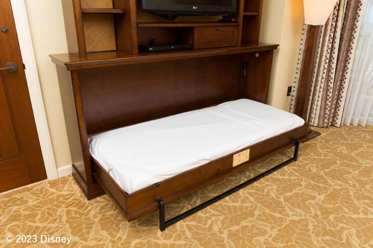 ヴィラタイプのお部屋には家具に隠れた折り畳み式の予備ベッドもございます。