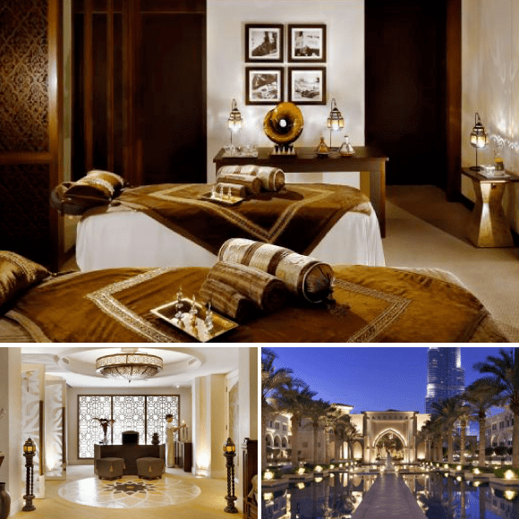 ドバイ・ファウンテンのすぐそばに建つホテル「パレス ダウンタウン」内にある気軽に利用できるスパ。決して大きな施設ではありませんが、スチームサウナにハマム、そしてカップル用のプライベートルームなど設備が充実。王家の邸宅のような外観も訪れたいポイントです。