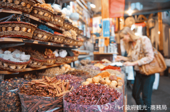 運河、モスクなどのある古くから栄えていたエリア。スパイスの香りが鼻をくすぐる「スパイス・スーク」、豪華絢爛な金製品のショップが軒を並べる「ゴールド・スーク」は必見。