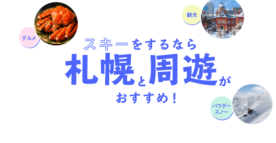 スキーを存分に楽しめるツアーや、観光も楽しみたい方に向けてスキー+札幌周遊ツアーなどバリエーション豊富。