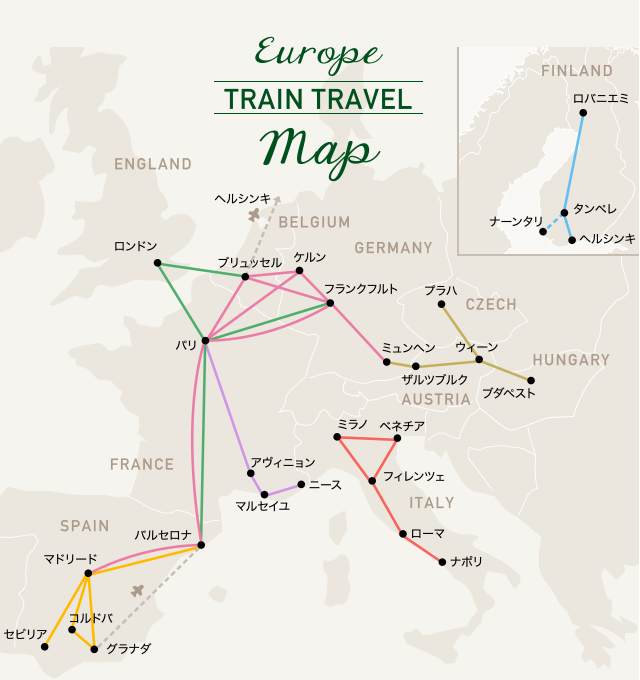 周遊旅行の利用が多いヨーロッパでは、都市間の移動手段を選べることが魅力です。そんな中お客様に人気があるのが鉄道の旅です。飛行機移動で利用する郊外にある空港と違い、駅のほとんどが都市の中心部に近く、主要都市間をダイレクトに移動できることが人気のポイントです。ひとつ知っておいていただきたいのは、様変わりした「現在」の鉄道の旅について。かつてヨーロッパには夜行列車が多数運行し、列車を宿にする旅人もいました。しかし高速化が進み、現在は夜行列車がほとんどありません。都市間を効率的・快適に移動し、滞在都市でたっぷり観光を楽しむことが主流となっています。もちろん鉄道での国境越えや、今なお走る夜行列車サンタクロース・エクスプレスなど、鉄道自体にも魅力はたっぷりです!