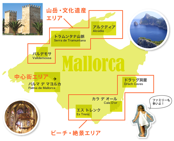 マヨルカ島は毎年ペイン王室一家がサマーバカンスに訪れる、世界的にも有名なリゾート地。海・山・世界遺産へ、カップル・家族・夫婦と様々な人が集まります。