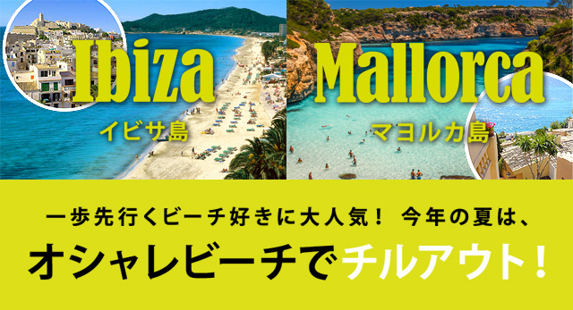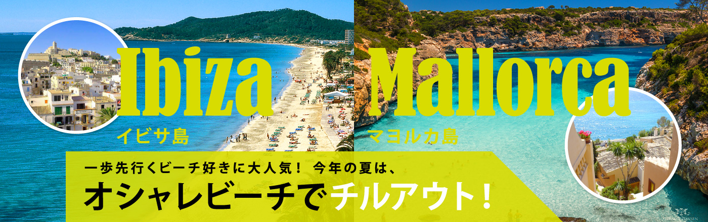 今年の夏はスペイン領土バイアレス諸島で人気の、イビサ島・マヨルカ島で最高にオシャレに過ごしませんか?ビーチリゾートとして日本ではまだまだ知名度の低いスペインですが、ヨーロッパの人々には鉄板のリゾート地です。ビーチとヨーロピアンな建造物のコラボレーションはなんとも魅力的でロマンティック!また島特有の、のんびりした空気が漂っており、子供から老夫婦まで皆が楽しんでいます。オシャレで目新しくも、親しみやすいビーチリゾートで、いつもとはひと味違う、エキゾチックな夏をお過ごしください!
