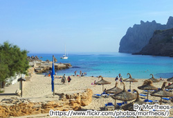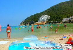 サンタ エウラリアの隣にあるビーチ、カラ ジョンガ。夏には緑生い茂る清々しい小さな街。街中にはレストラン、お土産やなどが並んでおり便利で、ファミリーやカップルで、のんびりと1日を過ごすのにうってつけです。 ビーチはサンタ エウラリアと同様、遠浅で湾になっており、子供向けです。