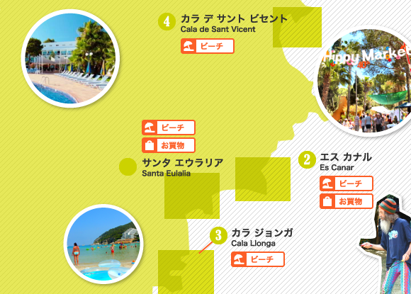 ビーチは遠浅で湾になっており、子供を遊ばせるのにも安心です。サンタ エウラリアの隣りのビーチ「カラ ジョンガ」や、隣りのヒッピーマーケットの街「エス カナル」への観光の拠点にもなっています。