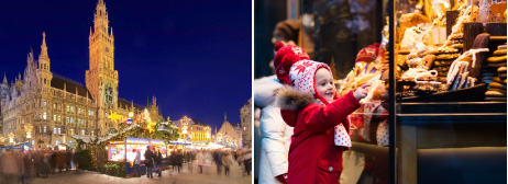 「ミュンヘン」のクリスマス・マーケットは、歴史的な市庁舎前のマリエン広場周辺で開催されます。市庁舎のバルコニーでは毎日音楽が生演奏されクリスマス・ムード満点!屋台でお土産探しや食べ歩きをお楽しみください。