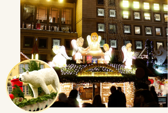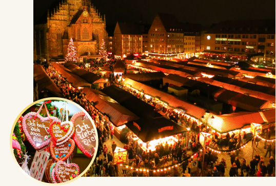 「フランクフルト」のクリスマス・マーケットは、1393年以来続く最も古く美しいマーケットの1つで、毎年300万人以上もの人々が訪れます。レーマーベルク、パウルス広場やマインカイ通りには約200の屋台が並びます。