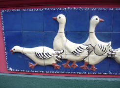 このマーケットの特徴は、テーマに合わせてとことん飾り付けられた屋台(木製の小屋)の屋根!サンタクロースや天使をはじめ、大きな動物のオブジェなど、とっても個性的で見ていて飽きる事がありません。毎年TOP5の屋台が選出され、年々盛り上がりを見せています。