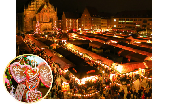 「フランクフルト」のクリスマス・マーケットは、1393年以来続く最も古く美しいマーケットの1つで、毎年300万人以上もの人々が訪れます。レーマーベルク、パウルス広場やマインカイ通りには約200の屋台が並びます。