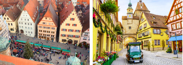 カラフルなおもちゃ箱のような風景が人気の「ローテンブルク」。クリスマス・シーズンは街中の家々が飾られ、よりメルヘンチックで素敵な雰囲気に!散策がとっても楽しいです♪ 小規模ですが、500年以上の歴史を持つクリスマス・マーケットも開催されます。