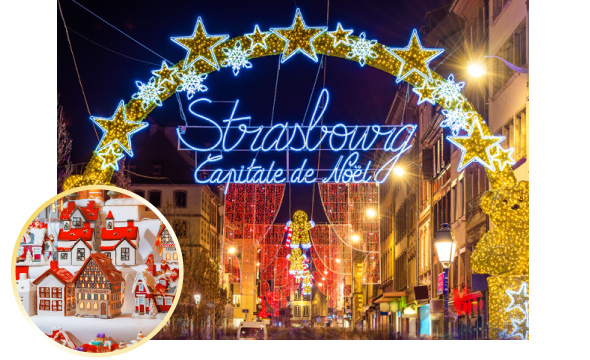 ホット・ワイン「ヴァン・ショー」を飲みながら、マーケット巡りをお楽しみください!ドイツとは一味違う、フランスらしい可愛い雑貨やオーナメントに出会えます。フランスの特産品やスイーツも味わうことができます!フランスで最も有名なクリスマス・マーケットを、ドイツから日帰りで存分にお楽しみください!
