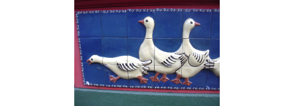 このマーケットの特徴は、テーマに合わせてとことん飾り付けられた屋台(木製の小屋)の屋根!サンタクロースや天使をはじめ、大きな動物のオブジェなど、とっても個性的で見ていて飽きる事がありません。毎年TOP5の屋台が選出され、年々盛り上がりを見せています。