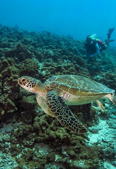 見られる生き物:ホワイトチップシャーク、カメなど