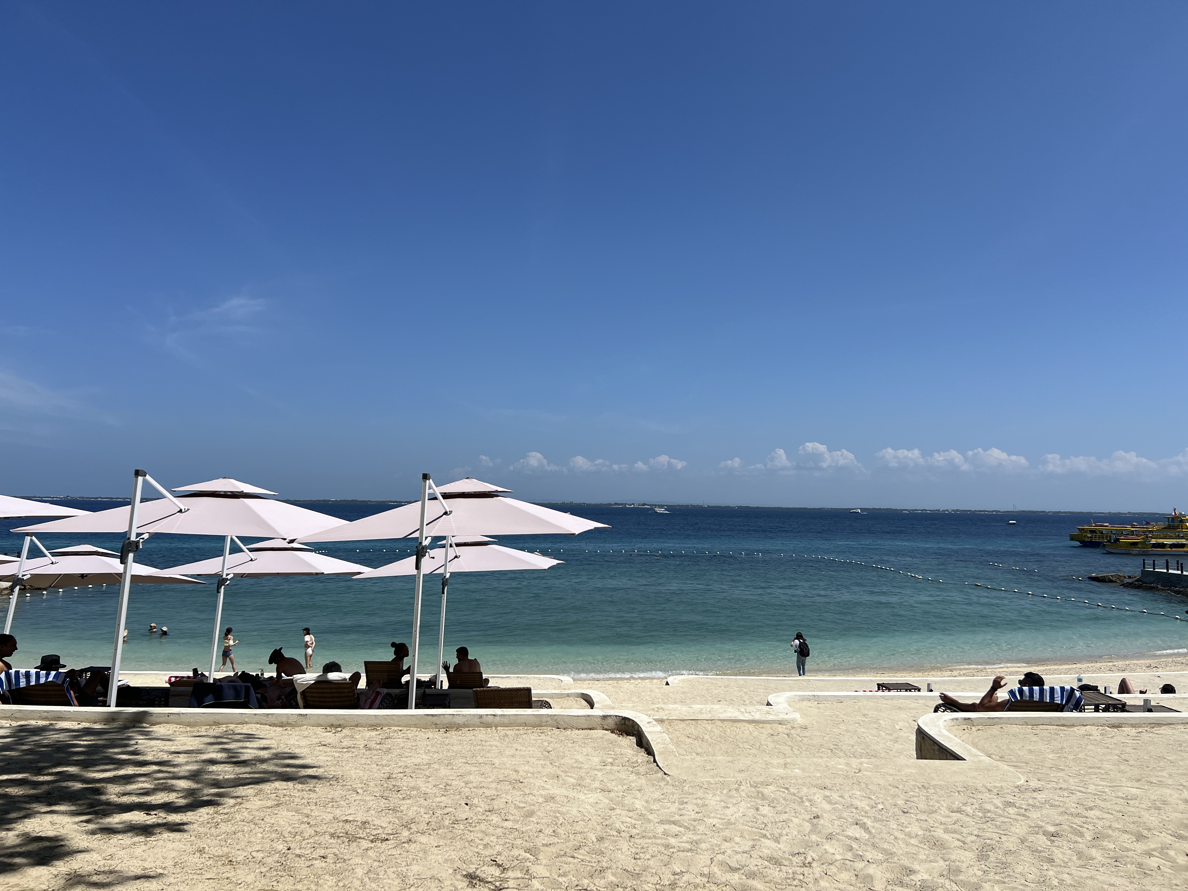 4日目は、ゆっくり朝食をいただいた後、ホテル提携のプライベートビーチへ。ホテルのプライベートビーチではなく、提携している別の場所へタクシーで向かいました。こちらのプライベートビーチは、提携にホテル滞在している人しか入れないので、現地の人もおらず宿泊客のみ。日本人とヨーロッパ系の方しかおらず、とてもゆっくりとした優雅な時間を過ごすことができました。お天気も最高。長時間滞在し、存分に泳ぎました。ビーチサイドにレストランも併設されていたので、気軽に食事もアルコールも楽しめました。セキュリティもしっかりしていたので安心して過ごせました。