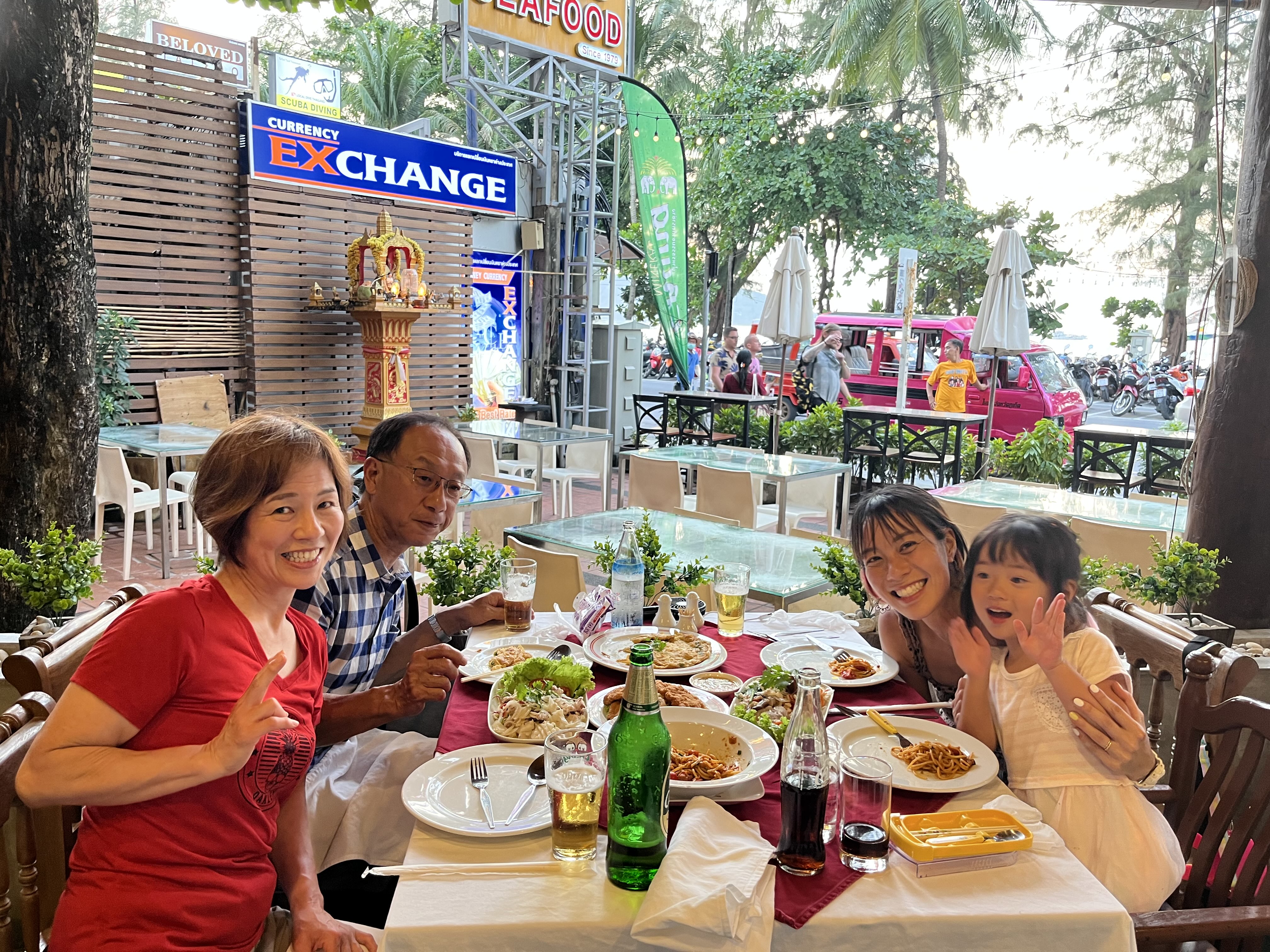 最近はアンコールワットやアユタヤなど、遺跡巡りが続いていましたが、今回は「大好きな海でゆっくり過ごしたいね」ということで、プーケット&ピピ島に決定。お義母さんは初の海外をとても満喫されていました。お兄ちゃんは英語で私たちをリードするなど、頼もしい姿を見せてくれて、最高の思い出ができました!