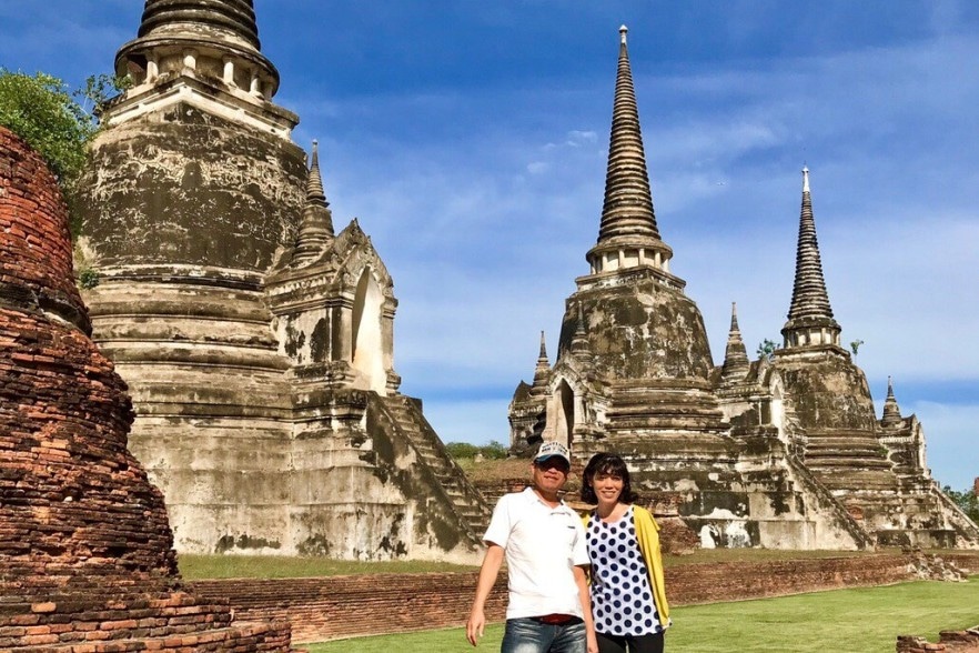 バンコク市内は電車やタクシーで移動しながら観光しましたが、「アユタヤ」は遠いのでツアー参加。タイはともかく暑いので自分たちで遺跡巡りするのは大変ですし、全部遺跡を見られたとしても、正直なところ日本人には違いがわかりづらい(笑)。その点ツアーであれば、おすすめの名所を効率的に観光してくれるので、助かります。ガイドさんもとてもよい方で、スムーズに観光できました。