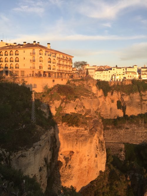 5日目はロンダへ。本当はグラナダからロンダへの列車の旅だったのですが、鉄道が工事中のためバスで向かうことに。この日はロンダのワイナリーを事前に予約していたので、駅までワイナリーの方が迎えに来て下さっていました。ワイナリーに着くと、辺り一面ぶとう畑。見晴らしが気持ち良い。カナダ人カップルと相席になり、ワインを試飲しながらおしゃべりに花が咲きました。メールアドレスも交換して、ちょっとした国際交流に。こちらのワインは添加物は入っていないオーガニックワイン。悪酔いもしないし口当たりの良い、美味しいワインでした。