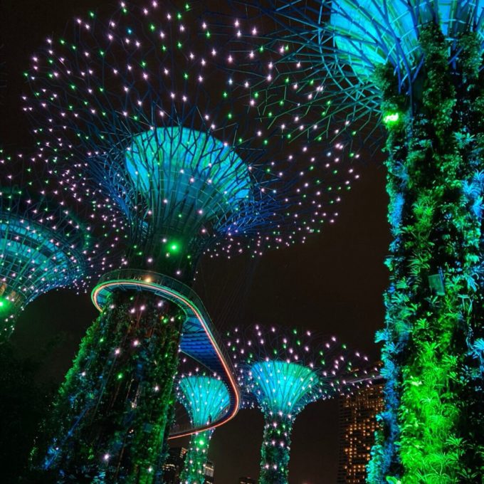 夜は事前予約をしてナイトサファリへ!トラムに乗りながら敷地内を移動しました。柵がなかったので動物がすごく間近に!ただ夜なので写真を上手く撮影できなかったのが残念・・・。ガーデンズ・バイ・ザ・ベイでは植物の幻想的な夜景が見られました。想像以上に高さがありました!