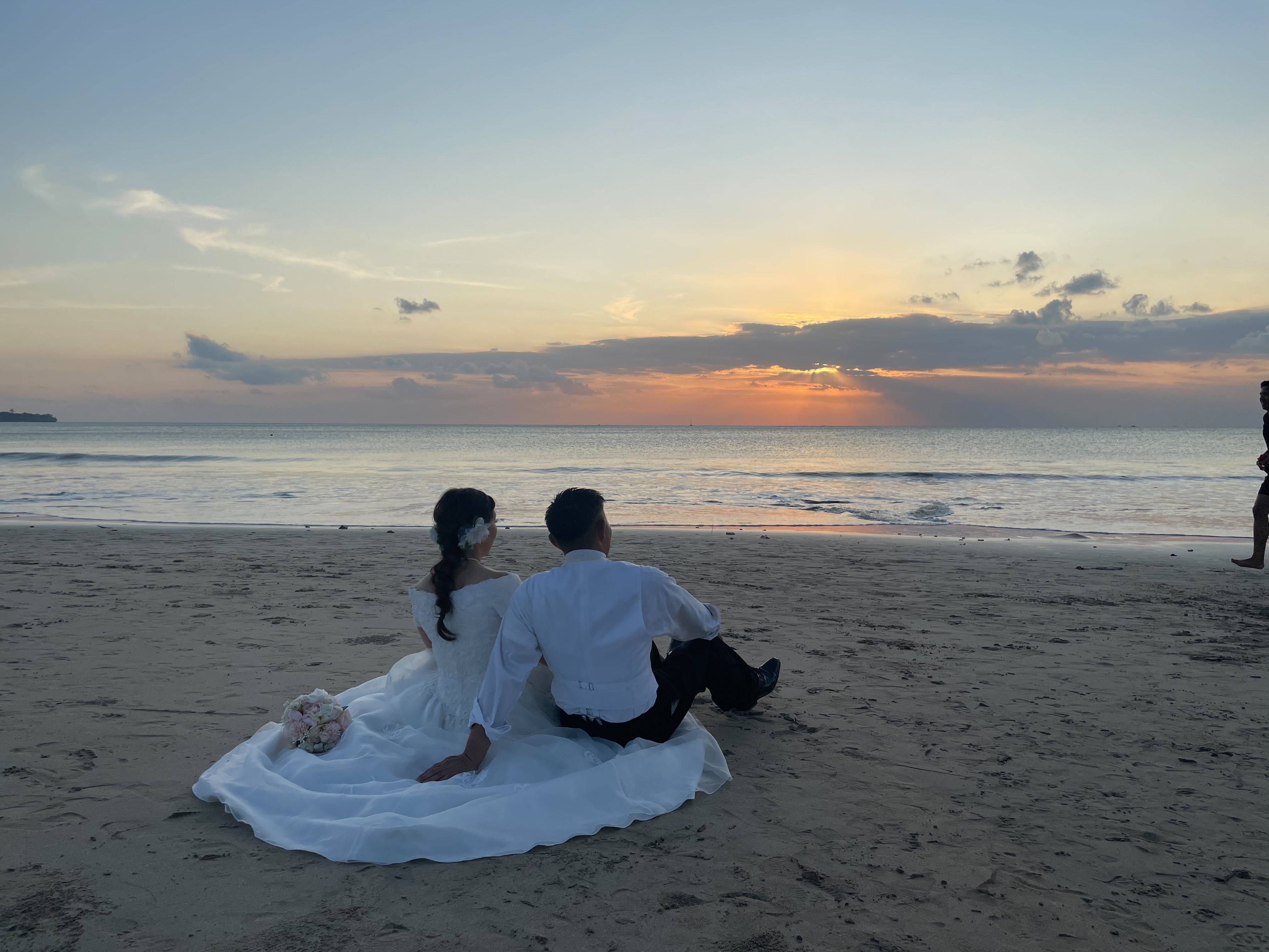 お二人の姿と夕日が沈んでいく様子が重なり、大変幻想的ですね。