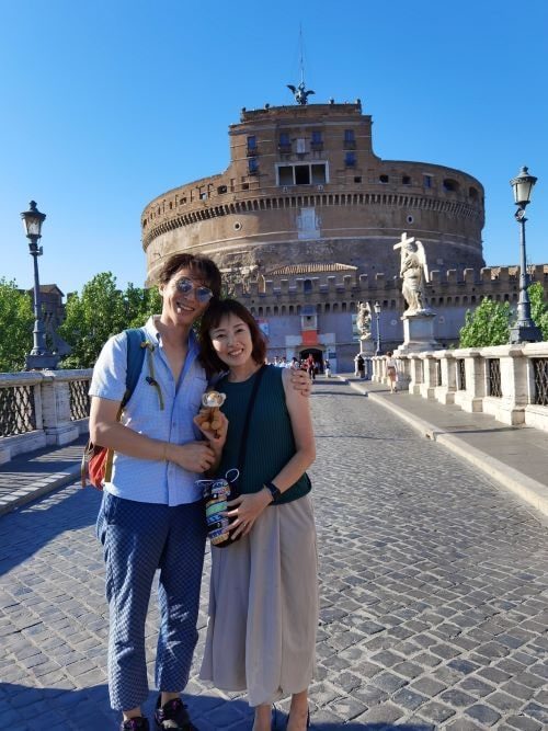 軽くパニーニを食べながら、次はテヴェレ川右岸にある城塞サンタンジェロ城へ。ローマは本当に街全体が美術館のよう。その中でも、特にサンタンジェロ城が素晴らしくて印象に残っています。荘厳なお城の側には川が流れていて、すごく素敵な雰囲気。見所もたくさんあって心に残った場所となりました。