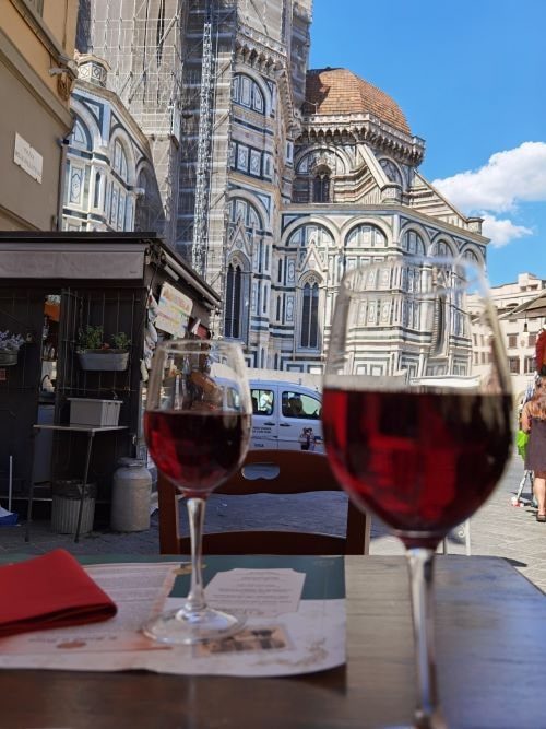早朝6時過ぎにアマルフィを出て、ナポリから鉄道でフィレンツェへ。鉄道は車内サービスも満点でとても快適でした(まるで飛行機みたいでした)。12時半にフィレンツェに到着し、さっそくランチへ!ドゥオーモのそばにある、「Sasso di Dante(サッソ・ディ・ダンテ)」というレストランへ行ったのですが、ここのレストランがすごく美味しかった!牛ステーキやトマトパスタがあまりにも美味しく大満足!昼間からワインまでいただいてしまい、ドゥオーモに登る前に酔っ払ってしまいました(笑)。ドゥオーモに実際登ってみると本当に圧倒されました。想像以上に建物も大きいし、美しい。階段でクーポラまで上がって見た上からの景色は凄すぎて言葉では言い表せません。今まで見た景色の中で最高の景色。本当に素晴らしかったです。