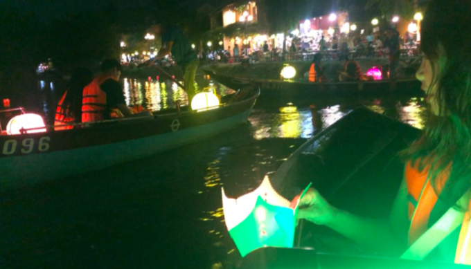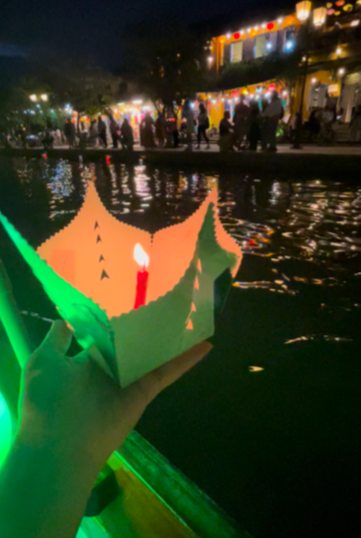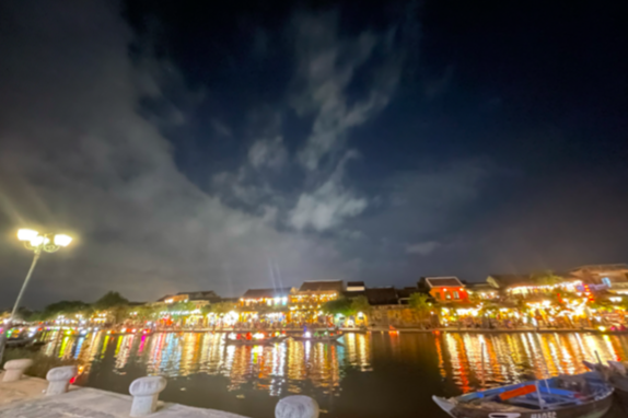 この後一旦ホテルに戻って、ホテルのバス送迎(タクシー)でホイアンへ向かいました。30〜40分ほどでホイアンに着きました。食事の前に船に乗って灯篭流しを経験しました。灯篭を購入し、船に乗り、各々好きなタイミングで川に流します。川の上に無数に浮かぶ灯篭は本当に綺麗でした。そして、ホイアンのナイトマーケット内の川沿いのレストラン「Kinh Chao Quy Khach」でディナーを。とーーーっても美味しくて安くて驚きでした!フォーや、エビの丸揚げを独自のスパイスで絡めたものなどいただきました。エビがとにかく大きくて美味しい!フォーは今まで食べたどこのフォーよりも美味しかったです。古都ホイアンの街は、明るくて趣があって楽しい!国外の観光客もたくさんいて、街はどこも賑わっていて活気もあり異国感漂う素敵な雰囲気でした。ホイアン最高。この後、タクシーでホテルに戻りました。