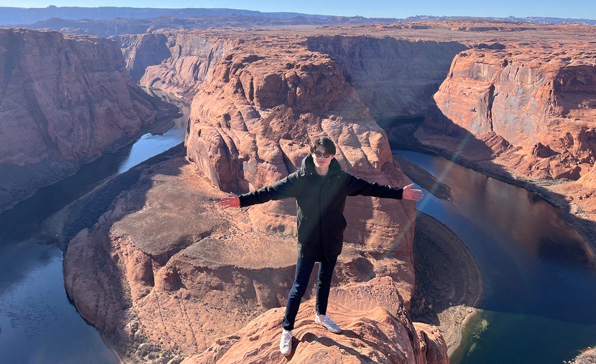 次に行ったのが、アメリカの自然遺産のなかでも一番行きたかった「ホースシュー・ベンド」。車を降りてから結構歩くので、私は足が悪いので大変でしたが、やっぱり行ってよかった! 予想を超える素晴らしい絶景が目の前に広がり、本当に感動しました。天気もよく素晴らしかったです。