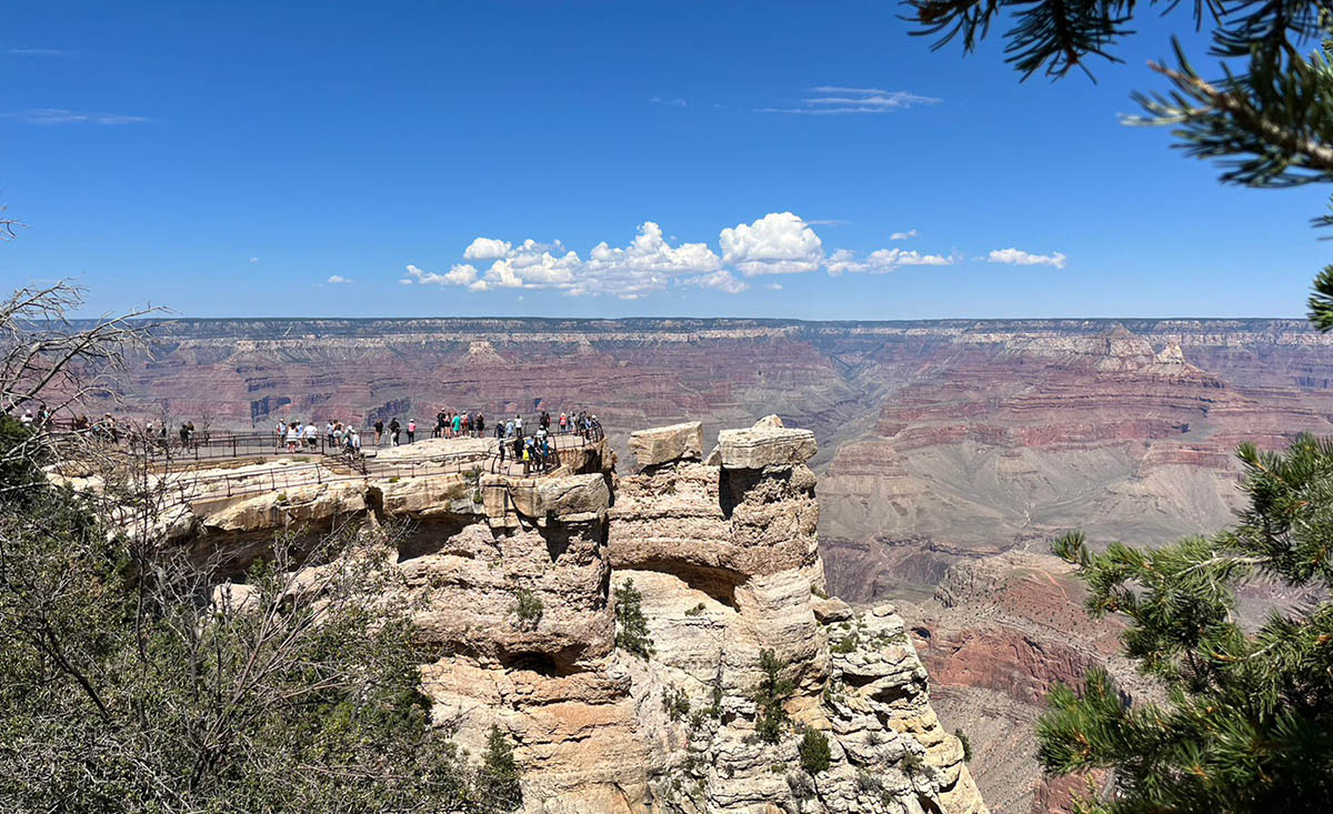 昼食後は、「アンテロープ・キャニオン」へ向かいました。こちらもまた全然別の絶景が広がっており迫力がすごかったです。その後は「ホースシュー・ベンド」を見に行きました。岩のまわりに川が流れていて、ここも圧倒される風景でした。