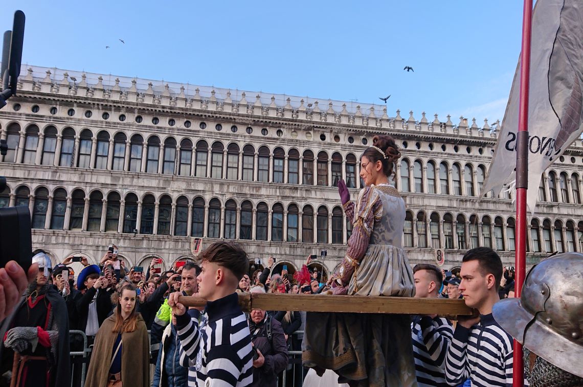 予約をしていた「ドゥカーレ宮殿」へ向かい、内部の見学へ。煌びやかな宮殿の様子や、当時の牢獄などの見学を楽しみました。次に予約はしていませんでしたが、広場にある「鐘楼」に入場して上に登り、ベネチアの街並みを見渡しました。その後は気ままに小路を散策したり、水の都の風景を楽しみました。