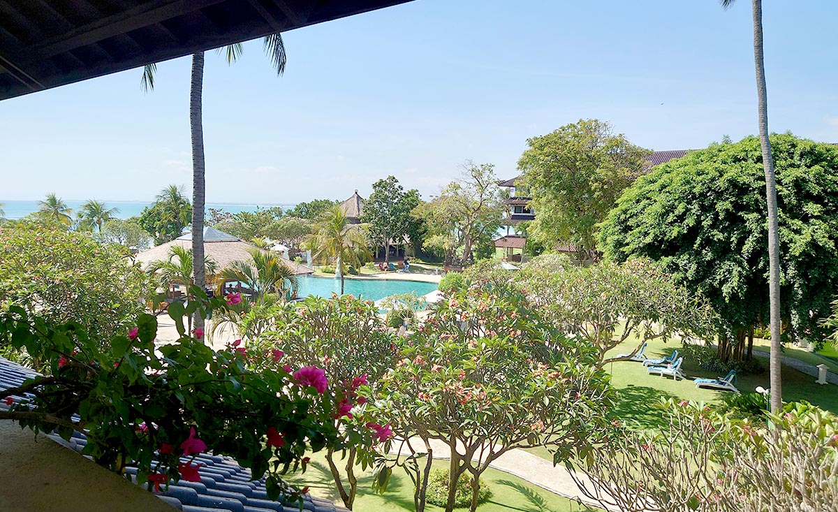 9月10日、朝食を食べてから、この日も午前中はプールで過ごしました。アクティビティに参加したり、プールサイドでのんびりしたり。ちなみにプールサイドの部屋からは、センタープールとその先にの海が見えて、クタエリアとは思えない贅沢感がありました。設備も素晴らしく、5つ星レベルに満足しました!