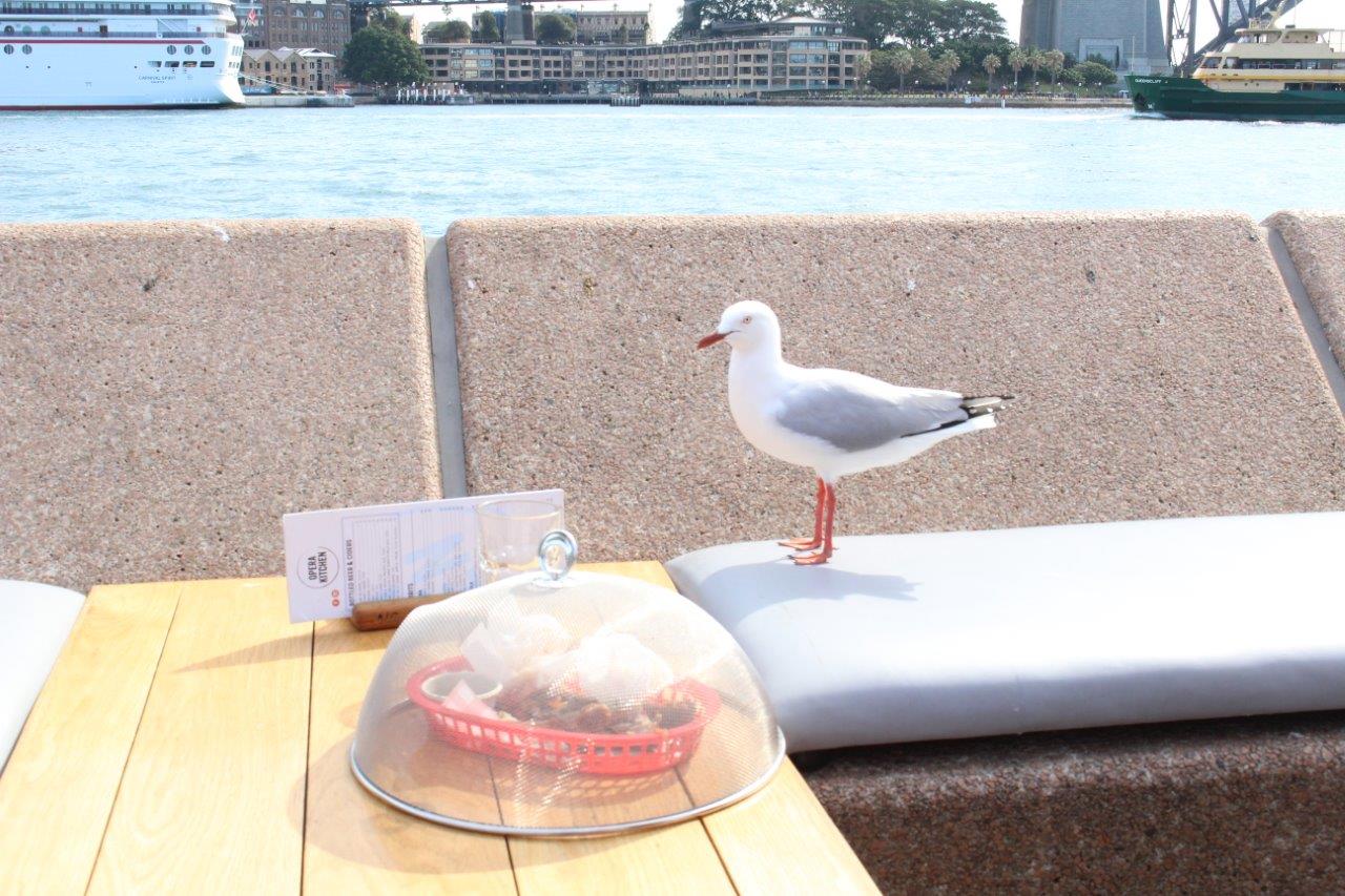 いくつかお店をピックアップしており、そのうちのひとつ「オペラキッチン」でお昼を食べることに。オープンテラスで解放感が溢れているのはいいのですが、油断するとかもめが食事を狙いにくるんです。かもめ予防のための専用カバーもあるのですが、フライドポテトを少し取られました。雰囲気はとてもよかっただけに、かもめには少々驚きました(笑)。
