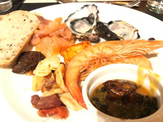 夕飯は予約したイルカリレストランへ。バイキング形式でしたが、小粒の生かきがなんとも言えないほどおいしかったです。他にはエビのグリル、パスタやサラダなど全体的に質のいい品が並んでいて、ゴージャスなディナーとなりました。
